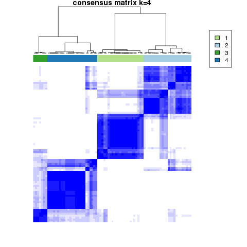 Figure 4. Get High-res Image The consensus matrix after clustering shows 4 clusters with limited overlap between clusters.