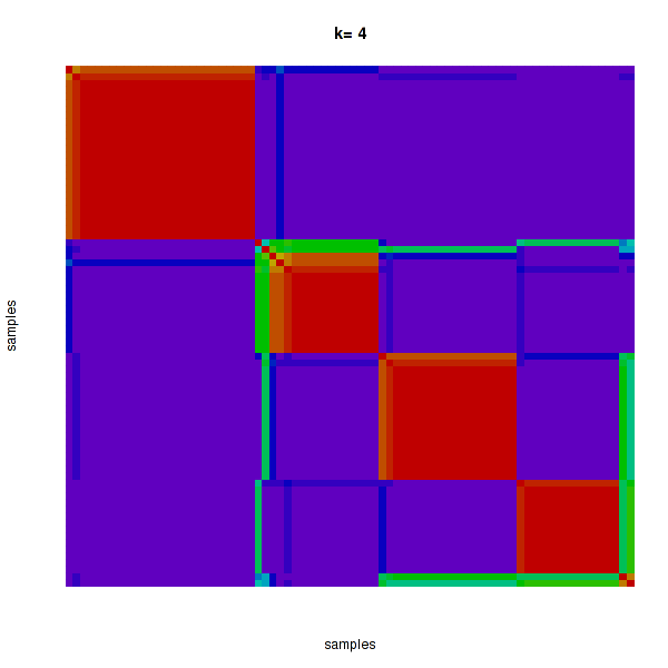 Figure 4. Get High-res Image The consensus matrix after clustering shows 4 clusters with limited overlap between clusters.
