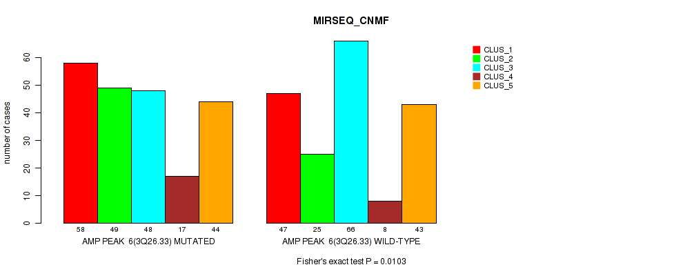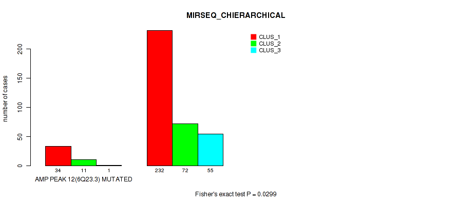amp_6q23.3 cnv correlated to 'CN_CNMF', 'MRNASEQ_CNMF', and 'MIRSEQ_CHIERARCHICAL'.