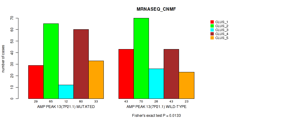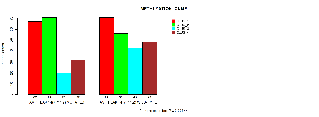amp_7p21.1 cnv correlated to 'CN_CNMF', 'METHLYATION_CNMF', 'RPPA_CNMF', 'MRNASEQ_CNMF', and 'MRNASEQ_CHIERARCHICAL'.