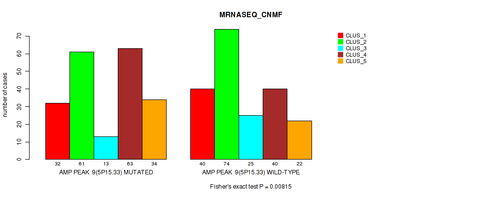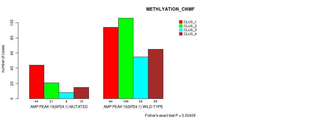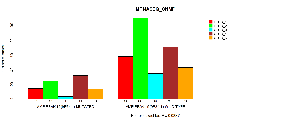 amp_9p24.1 cnv correlated to 'CN_CNMF', 'METHLYATION_CNMF', 'RPPA_CNMF', 'RPPA_CHIERARCHICAL', 'MRNASEQ_CNMF', 'MRNASEQ_CHIERARCHICAL', 'MIRSEQ_CNMF', 'MIRSEQ_MATURE_CNMF', and 'MIRSEQ_MATURE_CHIERARCHICAL'.