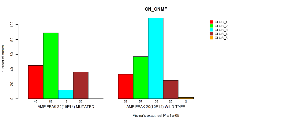 amp_10p14 cnv correlated to 'CN_CNMF', 'METHLYATION_CNMF', 'MRNASEQ_CNMF', and 'MRNASEQ_CHIERARCHICAL'.