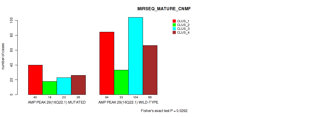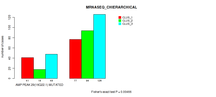amp_16q22.1 cnv correlated to 'CN_CNMF', 'MRNASEQ_CHIERARCHICAL', 'MIRSEQ_CHIERARCHICAL', and 'MIRSEQ_MATURE_CNMF'.