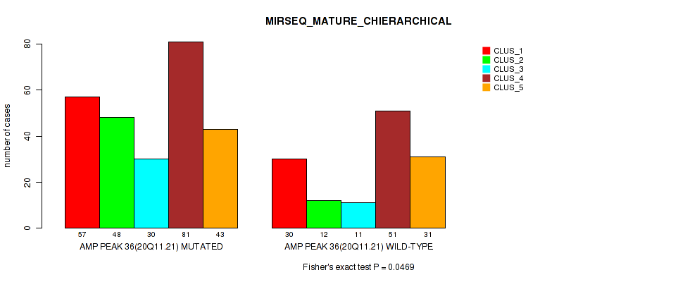 amp_20q11.21 cnv correlated to 'CN_CNMF', 'MRNASEQ_CHIERARCHICAL', and 'MIRSEQ_MATURE_CHIERARCHICAL'.