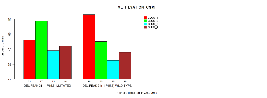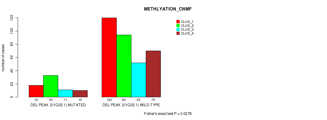 Table S321. Gene #71: 'del_22q13.32' versus Molecular Subtype #2: 'METHLYATION_CNMF'