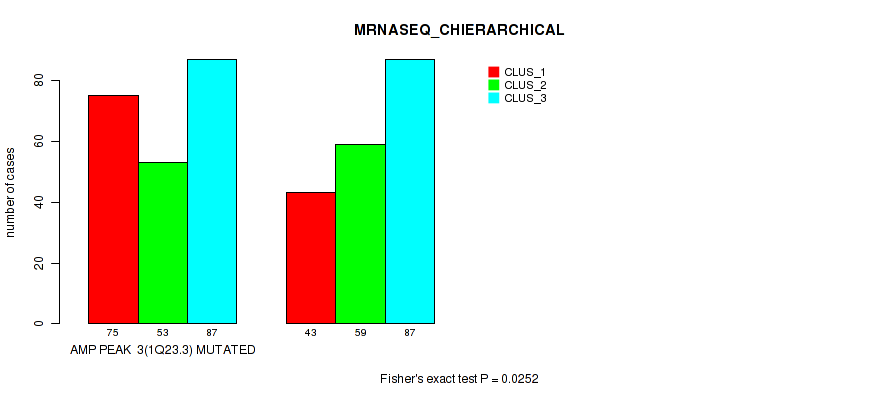 amp_1q23.3 cnv correlated to 'CN_CNMF', 'METHLYATION_CNMF', 'MRNASEQ_CNMF', 'MRNASEQ_CHIERARCHICAL', 'MIRSEQ_CNMF', 'MIRSEQ_CHIERARCHICAL', 'MIRSEQ_MATURE_CNMF', and 'MIRSEQ_MATURE_CHIERARCHICAL'.