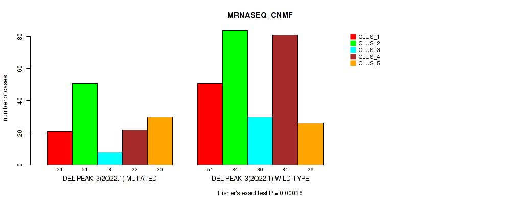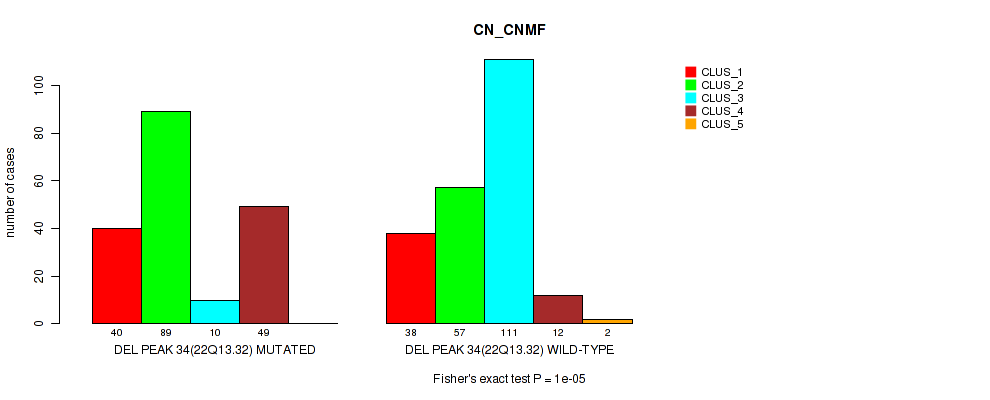 Figure S324. Get High-res Image Gene #71: 'del_22q13.32' versus Molecular Subtype #5: 'MRNASEQ_CNMF'