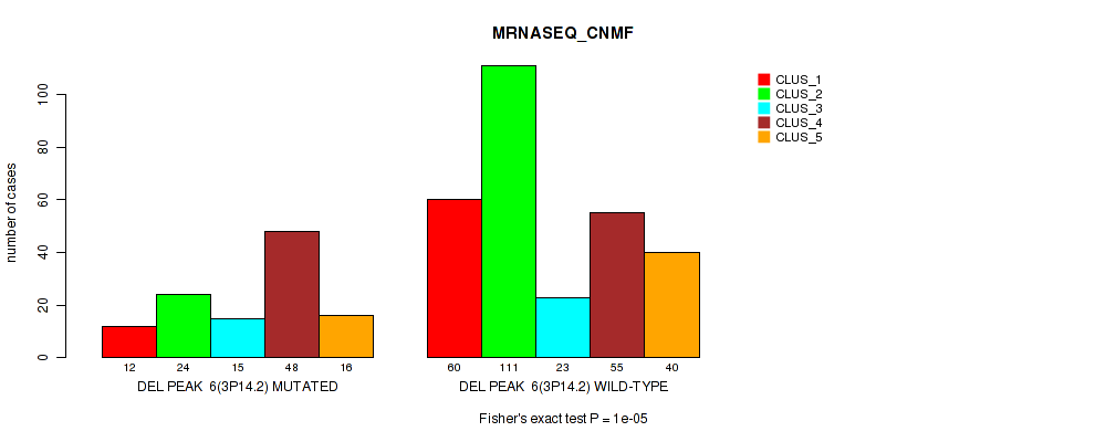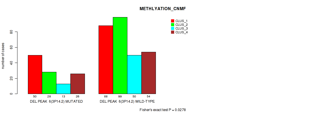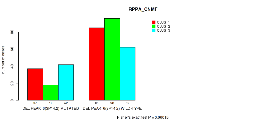 del_3p14.2 cnv correlated to 'CN_CNMF', 'METHLYATION_CNMF', 'RPPA_CNMF', 'RPPA_CHIERARCHICAL', 'MRNASEQ_CNMF', 'MRNASEQ_CHIERARCHICAL', 'MIRSEQ_CNMF', 'MIRSEQ_MATURE_CNMF', and 'MIRSEQ_MATURE_CHIERARCHICAL'.