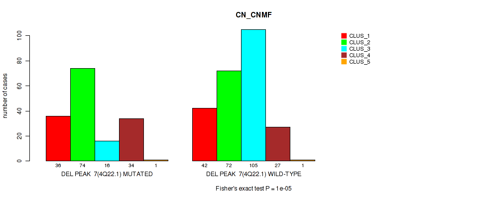 del_4q22.1 cnv correlated to 'CN_CNMF', 'RPPA_CNMF', 'RPPA_CHIERARCHICAL', 'MRNASEQ_CNMF', 'MRNASEQ_CHIERARCHICAL', 'MIRSEQ_CNMF', and 'MIRSEQ_MATURE_CHIERARCHICAL'.