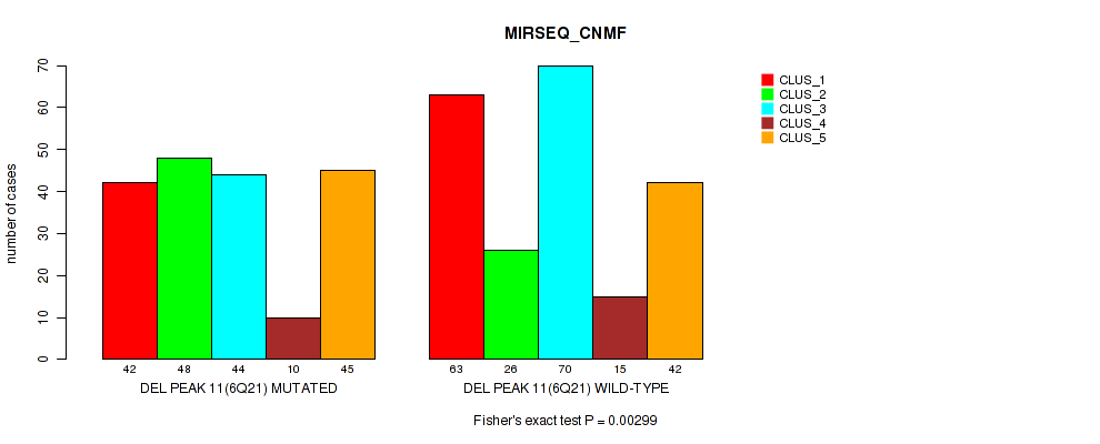 del_6q21 cnv correlated to 'CN_CNMF', 'MIRSEQ_CNMF', 'MIRSEQ_CHIERARCHICAL', and 'MIRSEQ_MATURE_CHIERARCHICAL'.