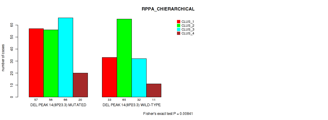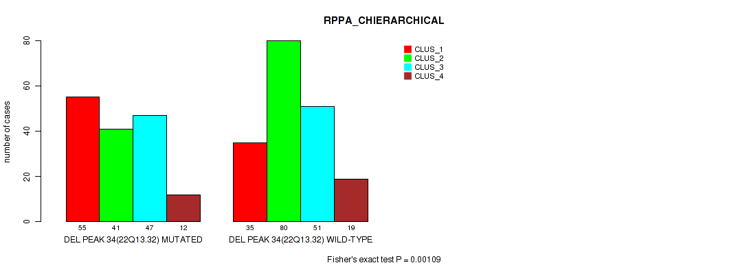 Table S323. Gene #71: 'del_22q13.32' versus Molecular Subtype #4: 'RPPA_CHIERARCHICAL'
