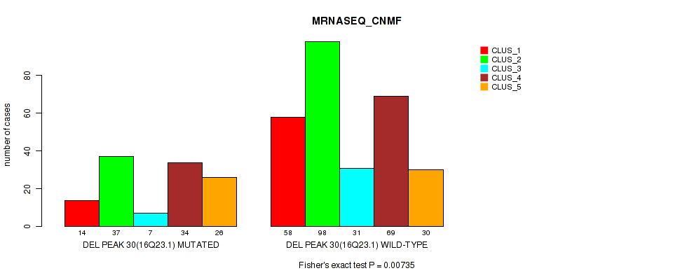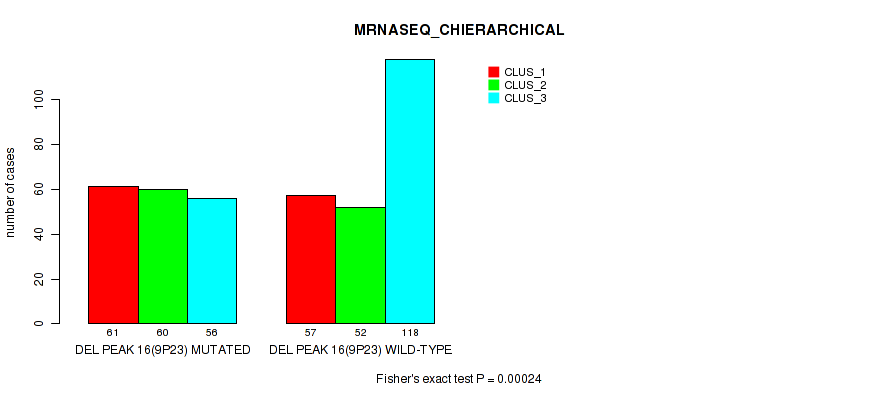 del_16q23.1 cnv correlated to 'CN_CNMF', 'MRNASEQ_CNMF', and 'MIRSEQ_CNMF'.
