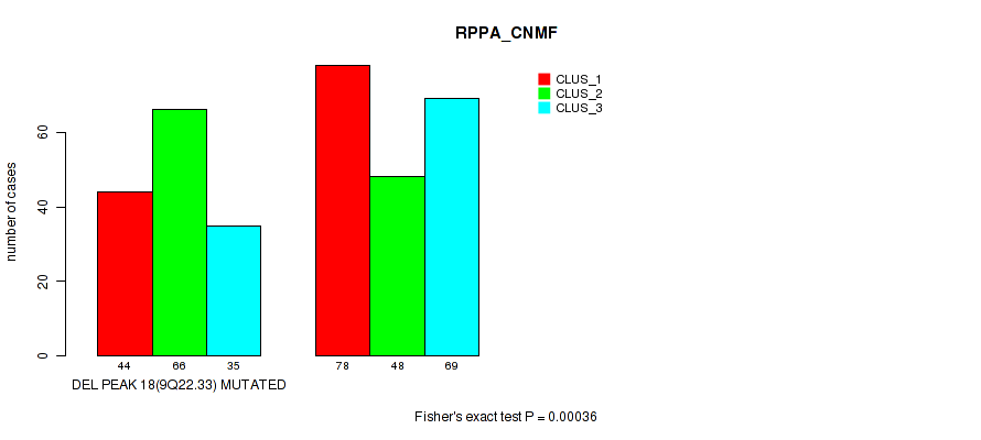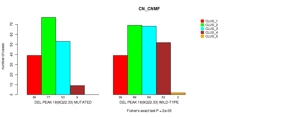 del_9q22.33 cnv correlated to 'CN_CNMF', 'METHLYATION_CNMF', 'RPPA_CNMF', 'RPPA_CHIERARCHICAL', 'MRNASEQ_CNMF', 'MRNASEQ_CHIERARCHICAL', 'MIRSEQ_CNMF', 'MIRSEQ_MATURE_CNMF', and 'MIRSEQ_MATURE_CHIERARCHICAL'.