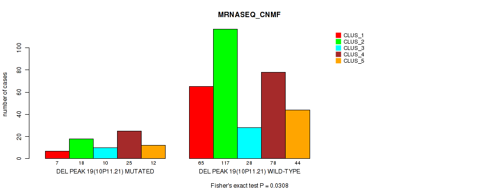 Figure S317. Get High-res Image Gene #70: 'del_19p13.3' versus Molecular Subtype #5: 'MRNASEQ_CNMF'