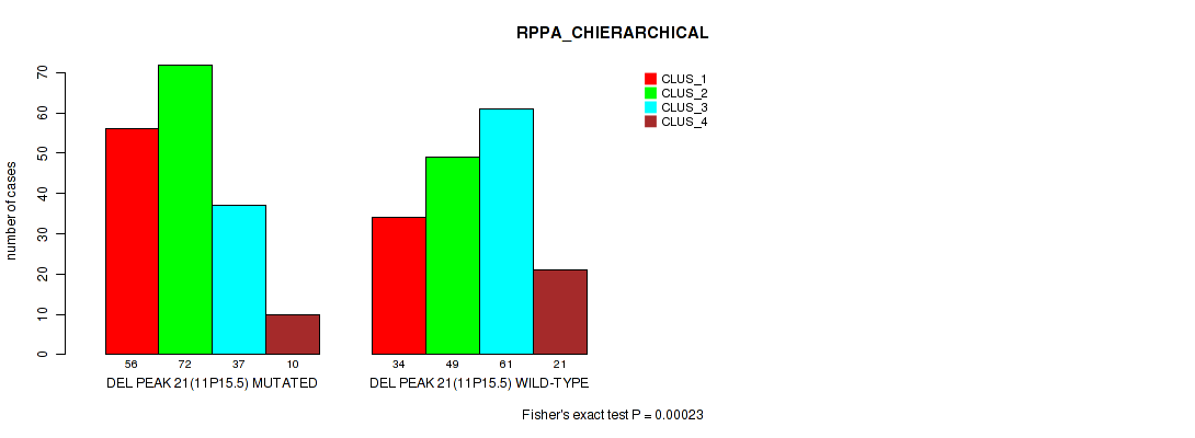 del_11p15.5 cnv correlated to 'CN_CNMF', 'METHLYATION_CNMF', 'RPPA_CHIERARCHICAL', 'MRNASEQ_CNMF', 'MRNASEQ_CHIERARCHICAL', 'MIRSEQ_CNMF', 'MIRSEQ_CHIERARCHICAL', 'MIRSEQ_MATURE_CNMF', and 'MIRSEQ_MATURE_CHIERARCHICAL'.