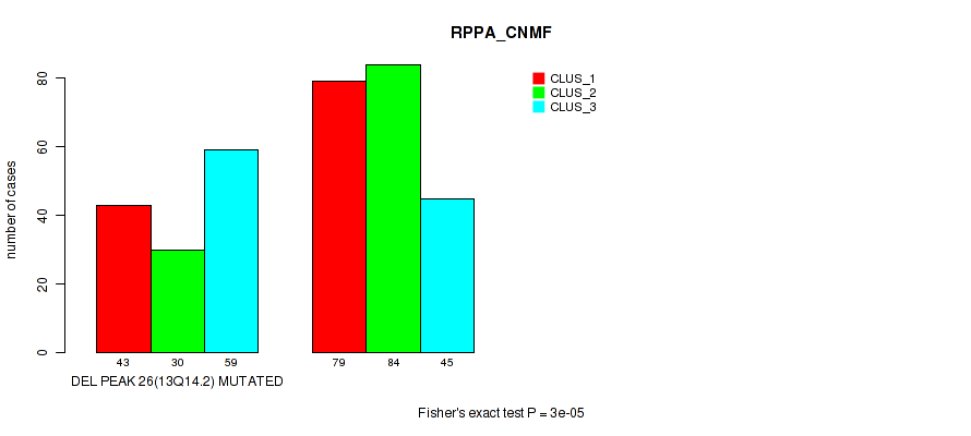 del_13q14.2 cnv correlated to 'CN_CNMF', 'RPPA_CNMF', 'RPPA_CHIERARCHICAL', 'MRNASEQ_CNMF', 'MRNASEQ_CHIERARCHICAL', 'MIRSEQ_CNMF', 'MIRSEQ_MATURE_CNMF', and 'MIRSEQ_MATURE_CHIERARCHICAL'.