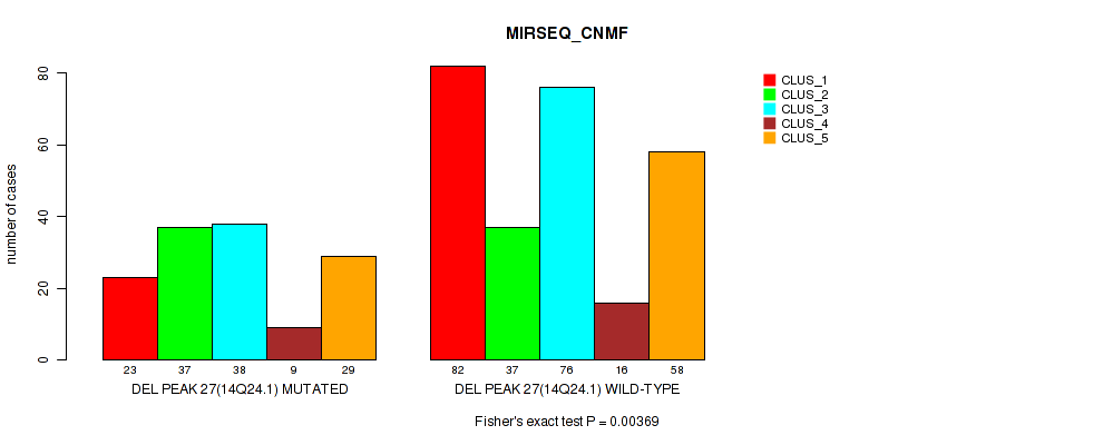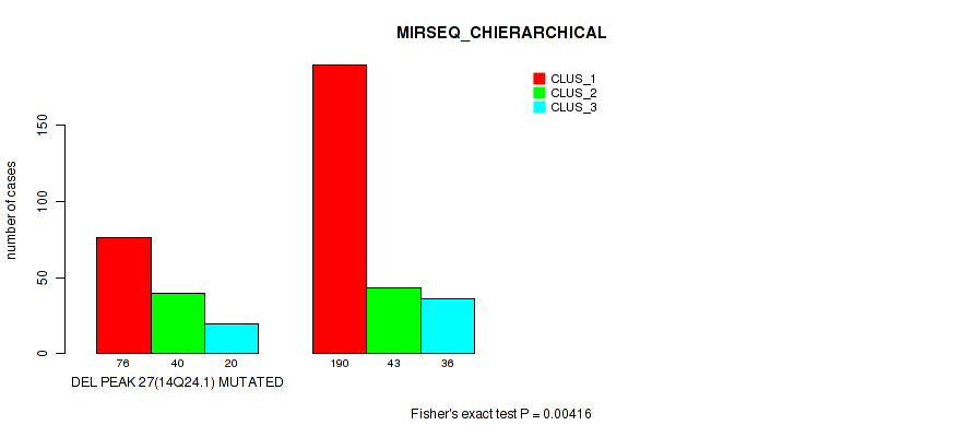 del_14q24.1 cnv correlated to 'CN_CNMF', 'METHLYATION_CNMF', 'MRNASEQ_CNMF', 'MRNASEQ_CHIERARCHICAL', 'MIRSEQ_CNMF', 'MIRSEQ_CHIERARCHICAL', 'MIRSEQ_MATURE_CNMF', and 'MIRSEQ_MATURE_CHIERARCHICAL'.