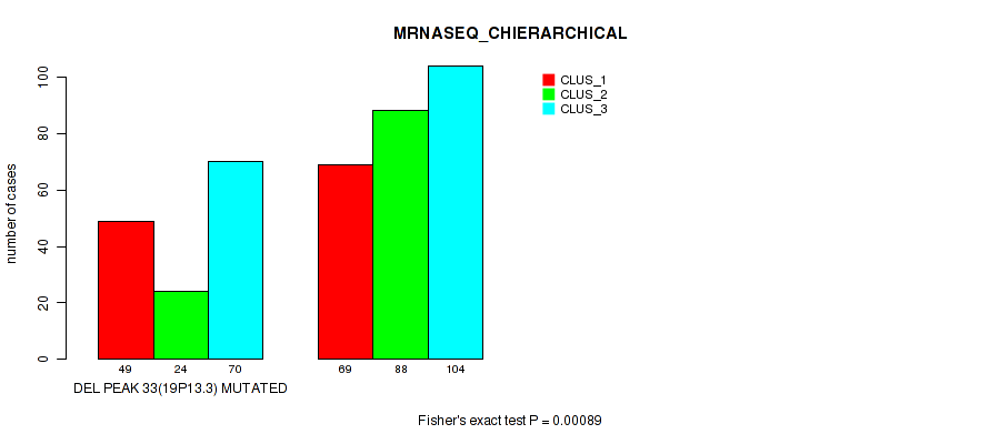 | DEL PEAK 33(19P13.3) MUTATED | 49 | 24 | 70 |