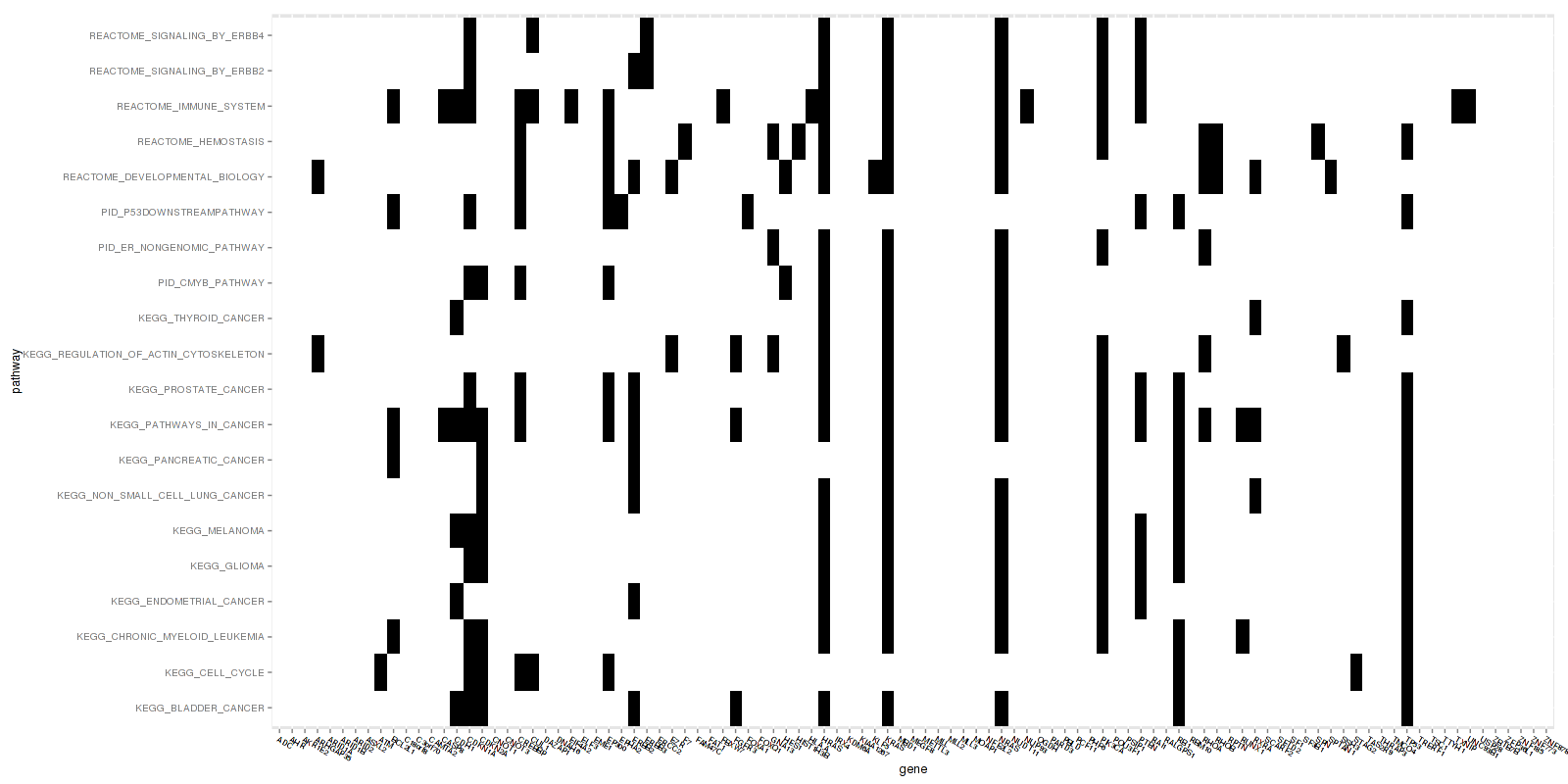 KEGG_PATHWAYS_IN_CANCER, KEGG_BLADDER_CANCER, KEGG_PROSTATE_CANCER, KEGG_MELANOMA, KEGG_CHRONIC_MYELOID_LEUKEMIA