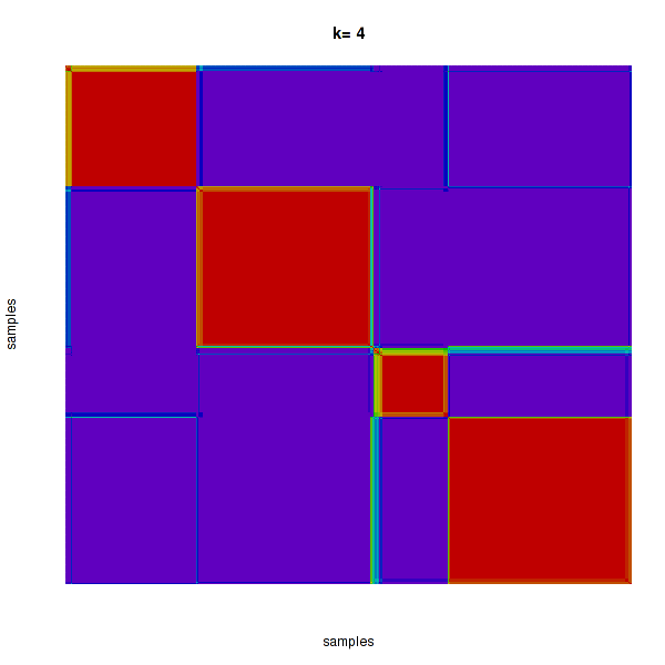 Figure 4. Get High-res Image The consensus matrix after clustering shows 4 clusters with limited overlap between clusters.