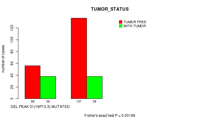 del_19p13.3 cnv correlated to 'TUMOR_STATUS'.