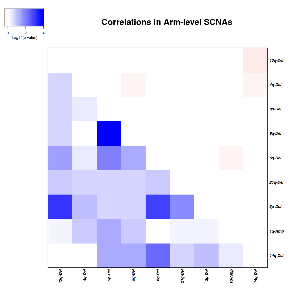 Figure 1. Get High-res Image Co-occurring and mutually-exclusive pairs for copy number variations of arm level events. Blue means two events are co-occurring and red means two events are mutually-exclusive.