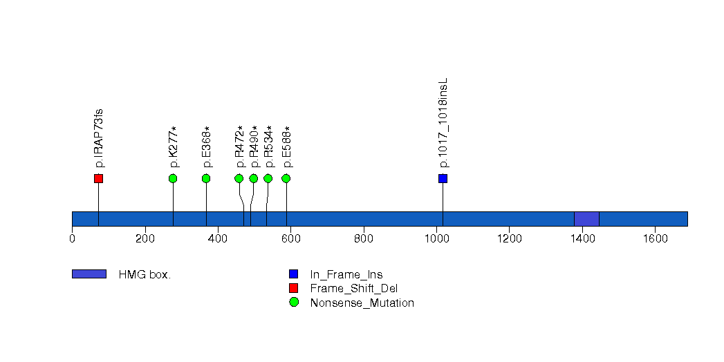 Figure S5. This figure depicts the distribution of mutations and mutation types across the ARID1A significant gene.
