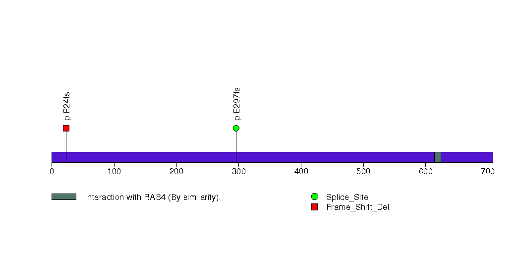 Figure S10. This figure depicts the distribution of mutations and mutation types across the CLIP4 significant gene.