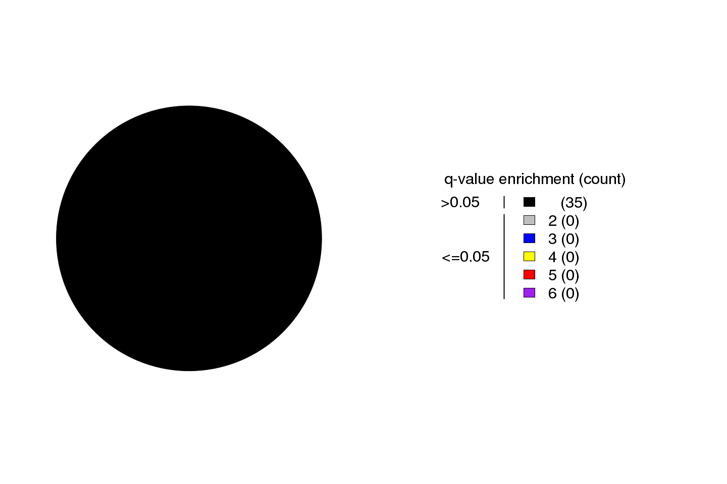 There are 35 tumor samples in this analysis. The Benjamini-Hochberg-corrected p-value for enrichment of the APOBEC mutation signature in 0 samples is <=0.05. Out of these, 0 have enrichment values >2, which implies that in such samples at least 50% of APOBEC signature mutations have been in fact made by APOBEC enzyme(s).
