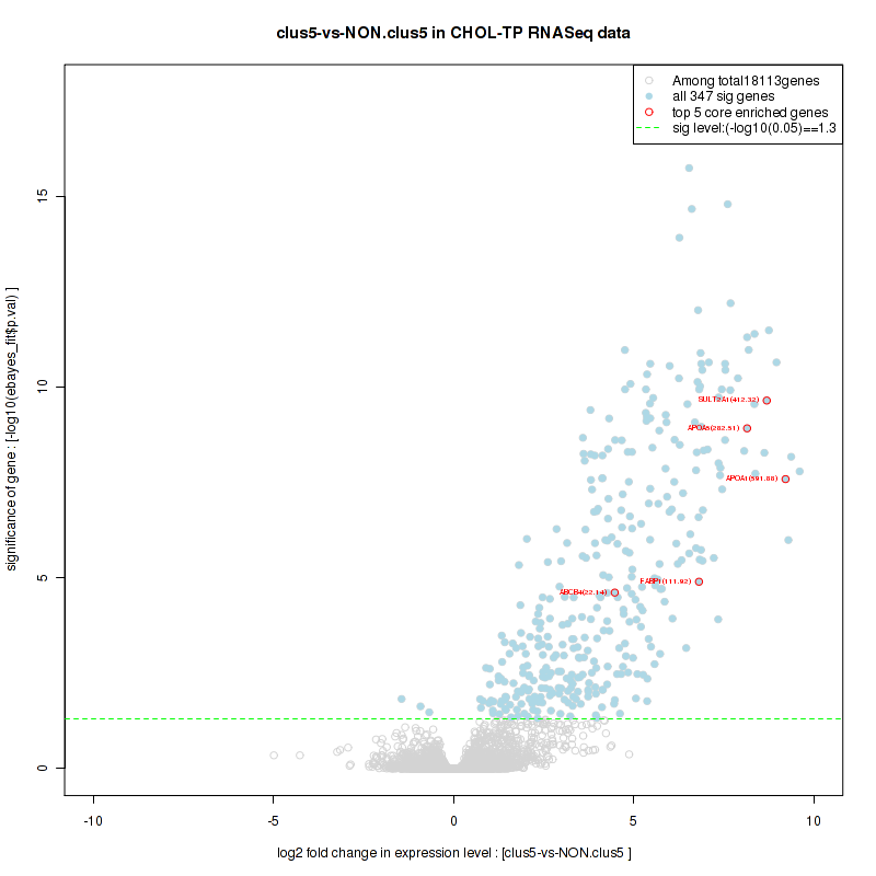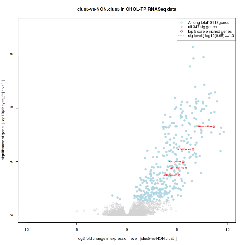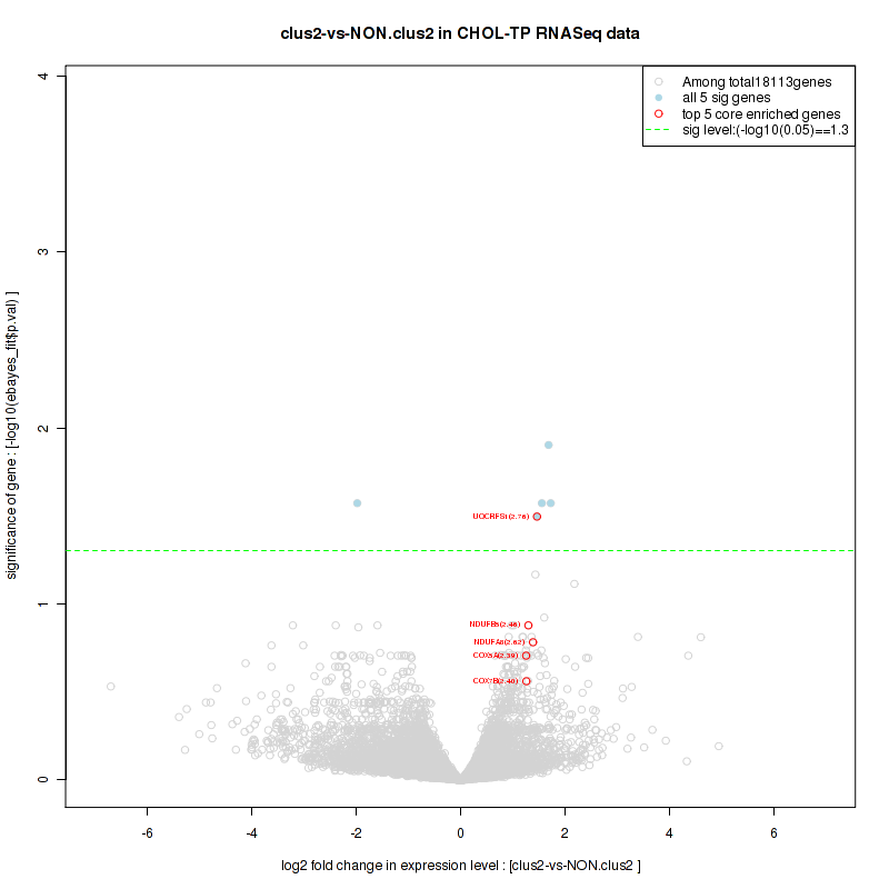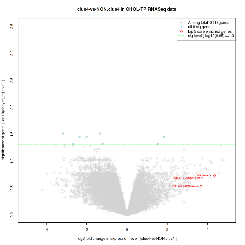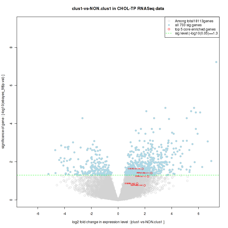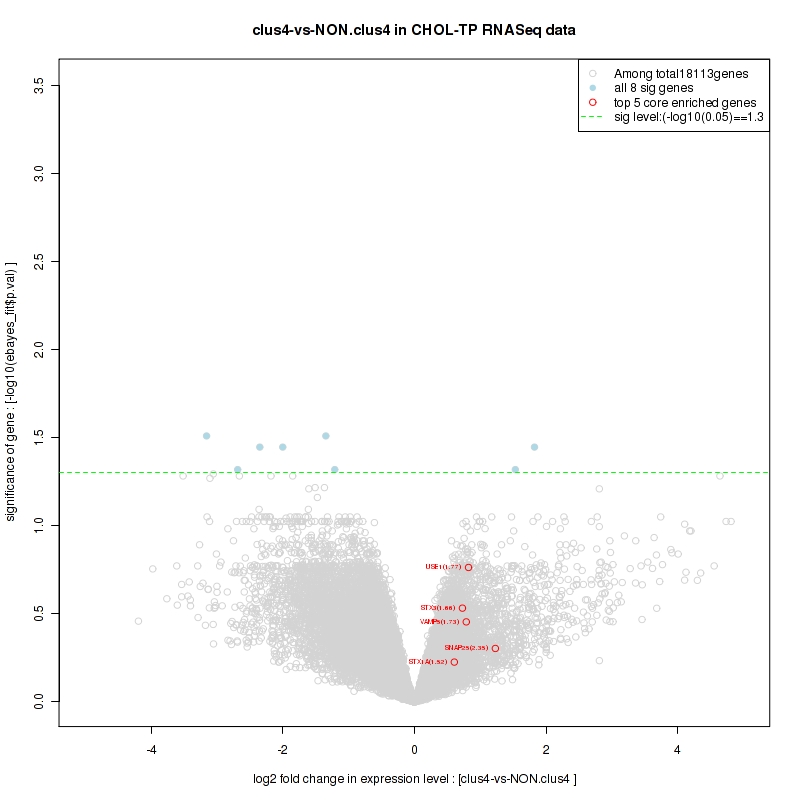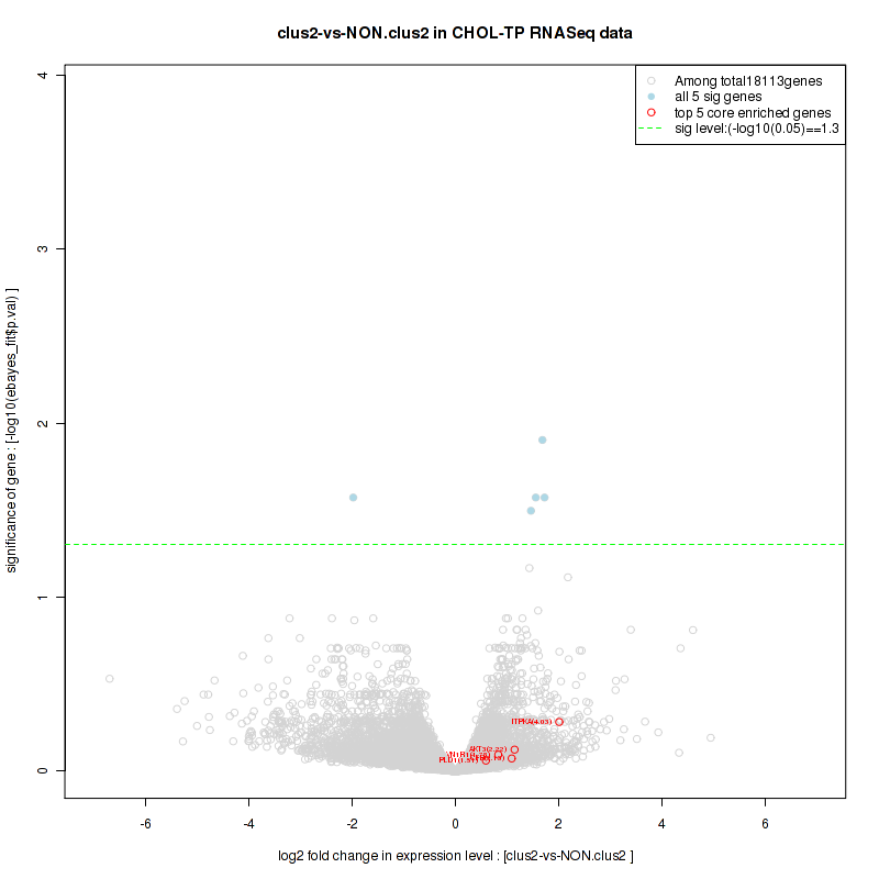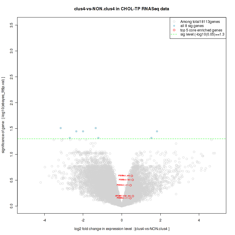 Figure S2. Get High-res Image For the top 5 core enriched genes in the pathway: KEGG PHOSPHATIDYLINOSITOL SIGNALING SYSTEM, this volcano plot shows how much they are up/down-regulated and significant. The significance was calculated by empirical bayesian fit