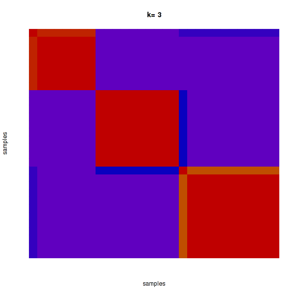 Figure 4. Get High-res Image The consensus matrix after clustering shows 3 clusters with limited overlap between clusters.