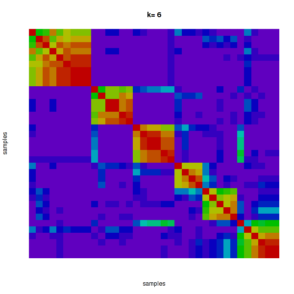 Figure 4. Get High-res Image The consensus matrix after clustering shows 6 clusters with limited overlap between clusters.