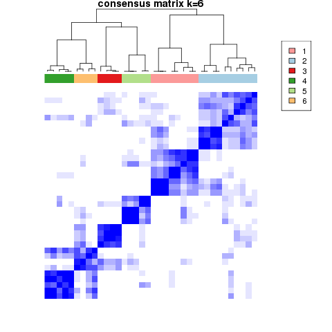 Figure 4. Get High-res Image The consensus matrix after clustering shows 6 clusters with limited overlap between clusters.