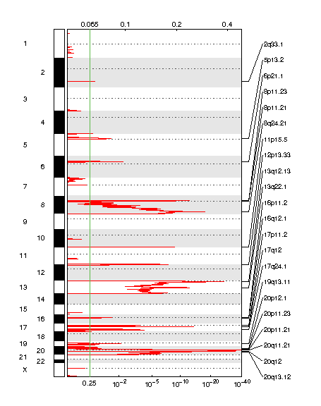 | 20p11.21 | 3.951e-17 | 0.010424 | chr20:25355954-25483163 | 3 |