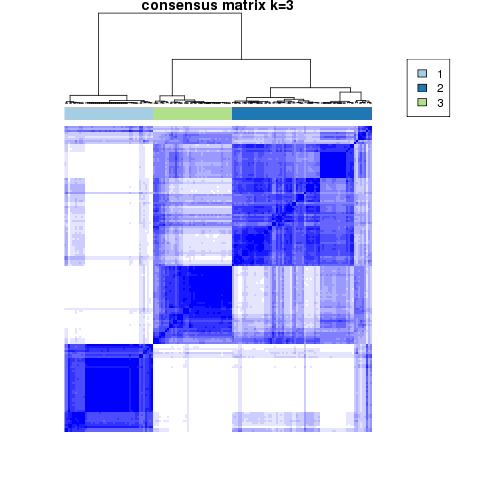 Figure 4. Get High-res Image The consensus matrix after clustering shows 3 clusters with limited overlap between clusters.