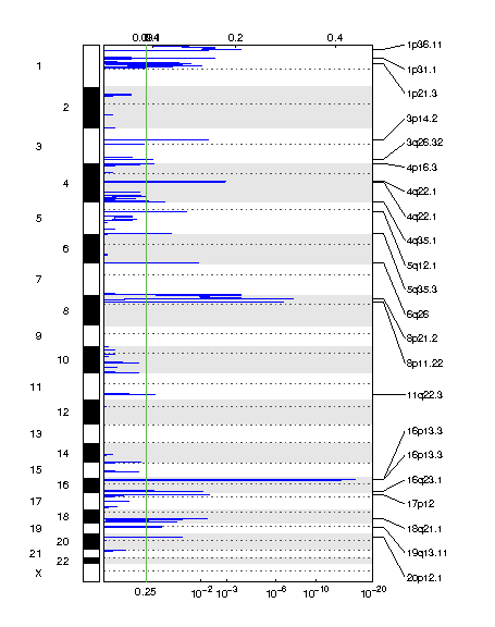 | 12p13.33 | 0.15438 | 0.80338 | chr12:1-133851895 | 1243 |
