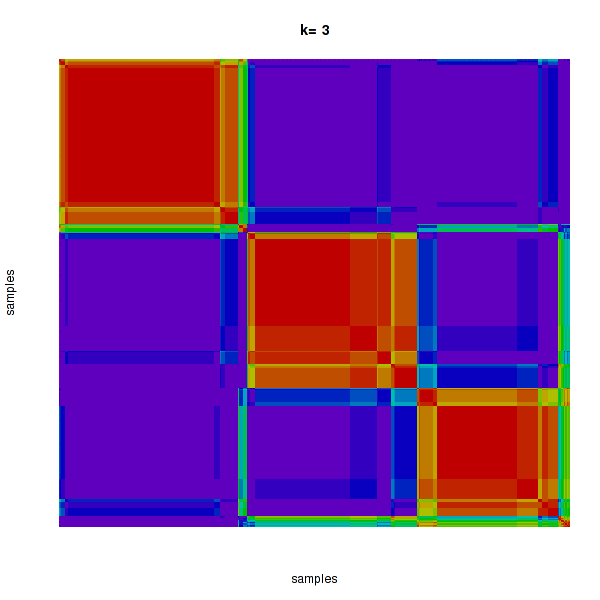 Figure 4. Get High-res Image The consensus matrix after clustering shows 3 clusters with limited overlap between clusters.