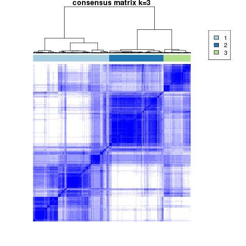 Figure 4. Get High-res Image The consensus matrix after clustering shows 3 clusters with limited overlap between clusters.