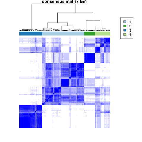 Figure 4. Get High-res Image The consensus matrix after clustering shows 4 clusters with limited overlap between clusters.