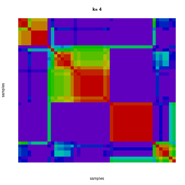 Figure 4. Get High-res Image The consensus matrix after clustering shows 4 clusters with limited overlap between clusters.