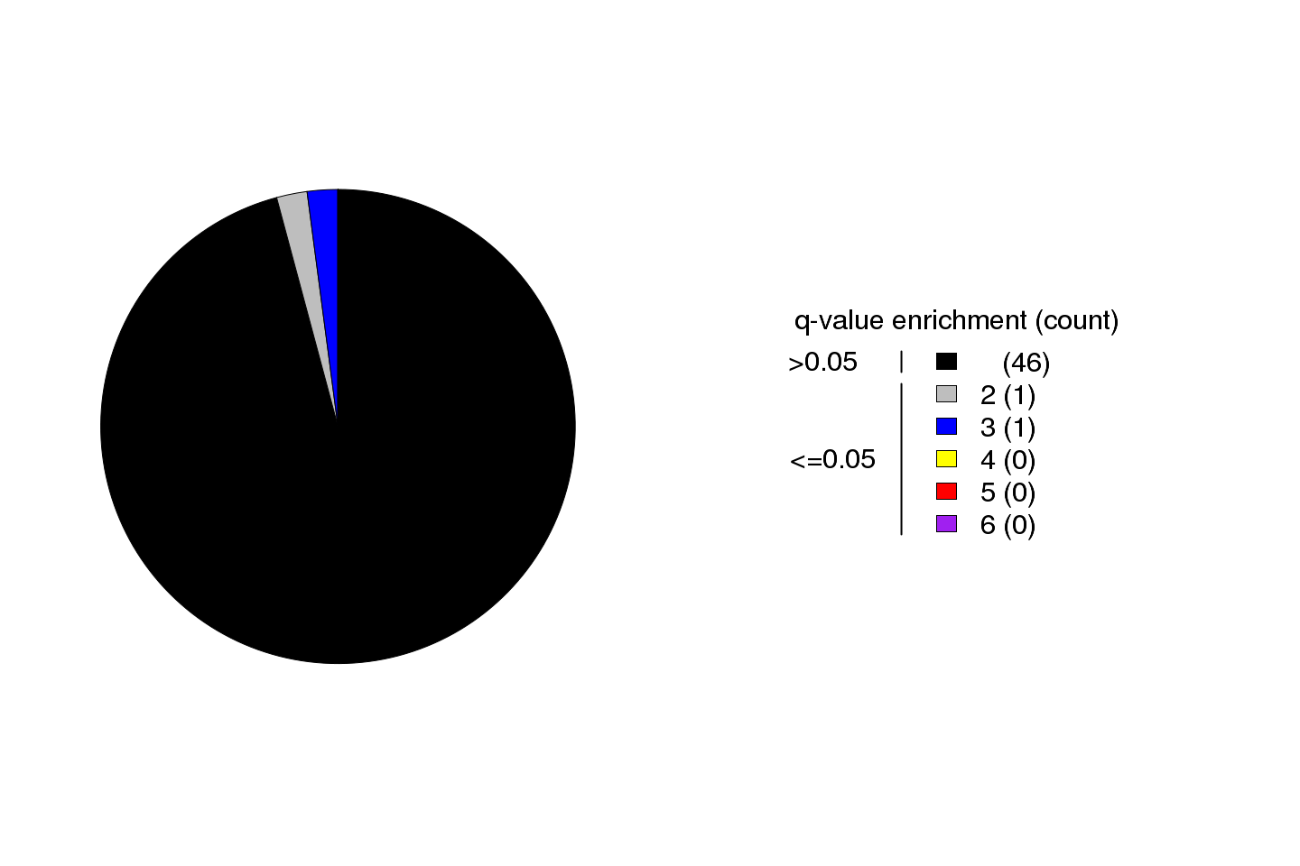 There are 48 tumor samples in this analysis. The Benjamini-Hochberg-corrected p-value for enrichment of the APOBEC mutation signature in 2 samples is <=0.05. Out of these, 1 have enrichment values >2, which implies that in such samples at least 50% of APOBEC signature mutations have been in fact made by APOBEC enzyme(s).