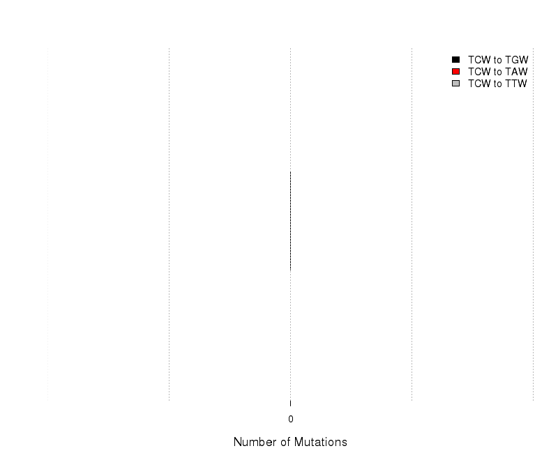 Figure 8. Get High-res Image The number of mutations categorized into three possible types of substitutions at the tCw motif (complementary mutations included) within C- or G-coordinated clusters. Numbers are calculated using the “Totals” row in the corresponding columns of the “*_sorted_sum_G_C_clusters.txt” file. Mutations caused by cytidine deamination in stretches of ssDNA caused by APOBEC mutagenesis are expected to be predominantly C-->T or C-->G with very few C-->A. Base substitution categories are shown within TCW context.