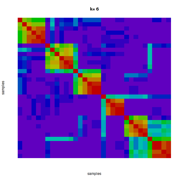Figure 4. Get High-res Image The consensus matrix after clustering shows 6 clusters with limited overlap between clusters.