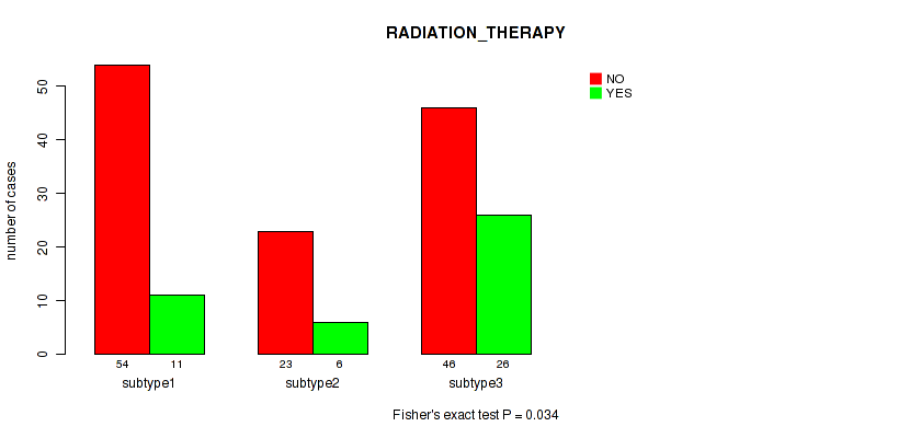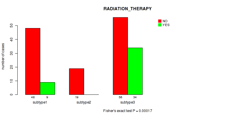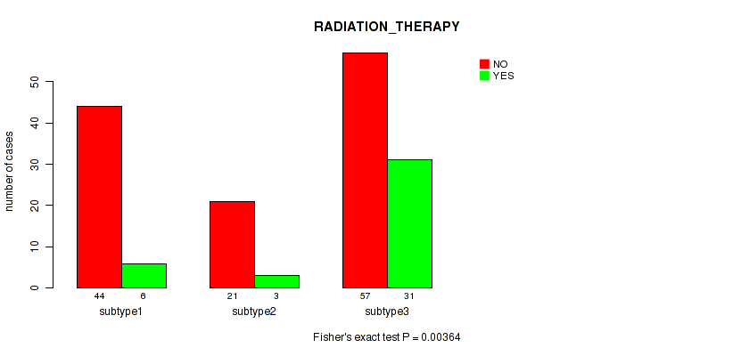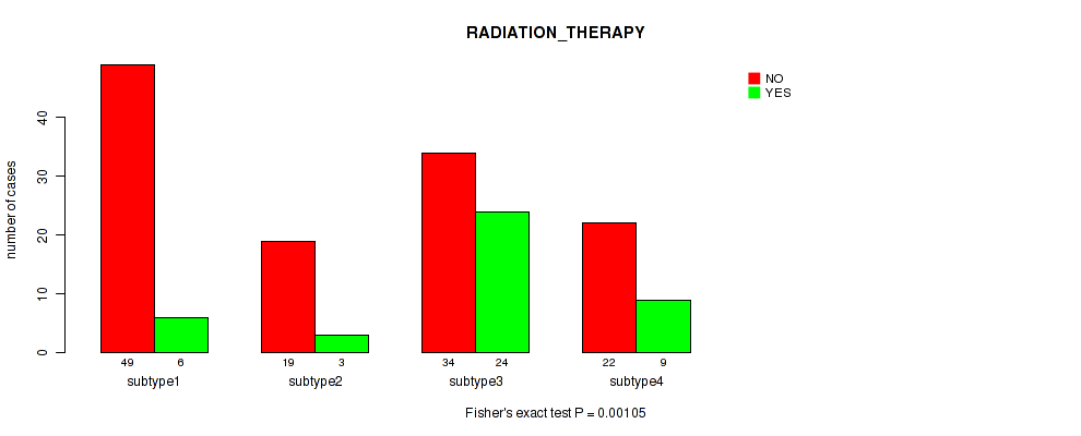 Figure S143. Get High-res Image Clustering Approach #10: 'MIRseq Mature cHierClus subtypes' versus Clinical Feature #8: 'RADIATION_THERAPY'