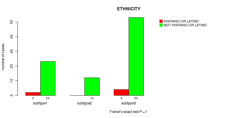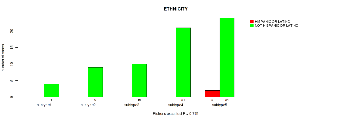 Figure S135. Get High-res Image Clustering Approach #9: 'MIRseq Mature CNMF subtypes' versus Clinical Feature #15: 'ETHNICITY'