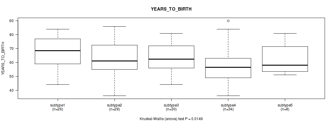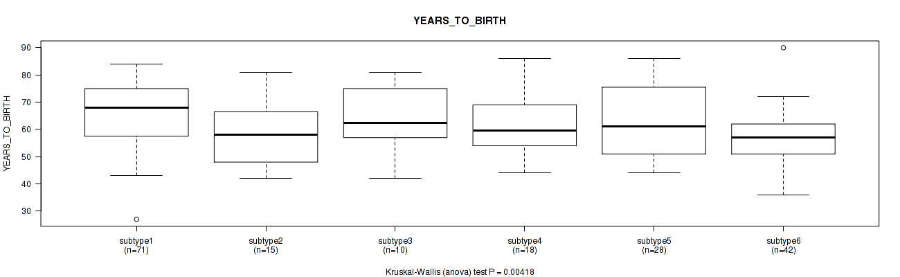 | YEARS TO BIRTH | Kruskal-Wallis (anova) |