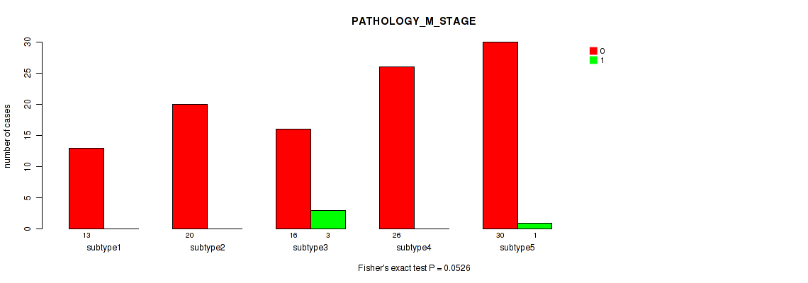 | PATHOLOGY M STAGE | Fisher's exact test |