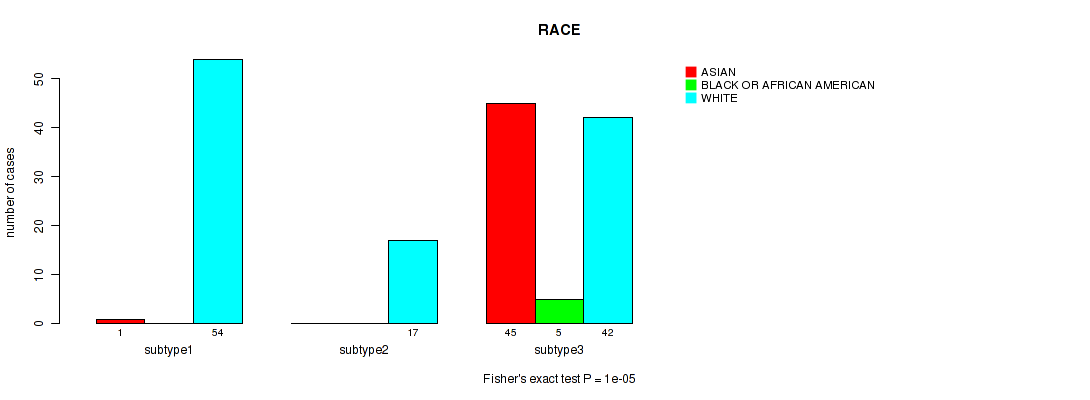 Consensus hierarchical clustering analysis on sequencing-based mRNA expression data identified 3 subtypes that correlate to 'YEARS_TO_BIRTH', 'PATHOLOGIC_STAGE', 'PATHOLOGY_T_STAGE', 'PATHOLOGY_N_STAGE', 'RADIATION_THERAPY', 'KARNOFSKY_PERFORMANCE_SCORE', 'HISTOLOGICAL_TYPE', and 'RACE'.