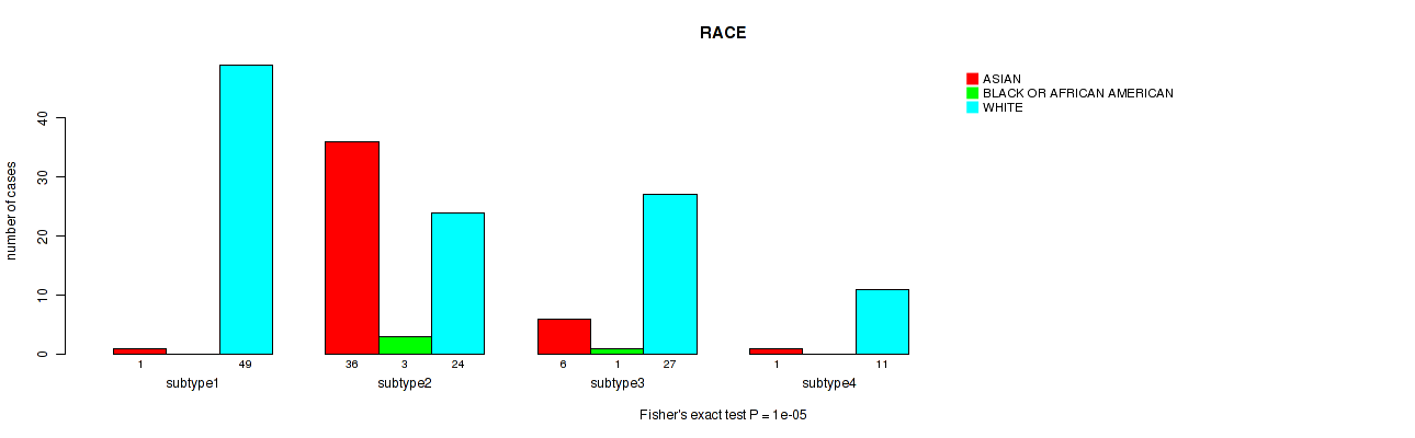 Table S159. Clustering Approach #10: 'MIRseq Mature cHierClus subtypes' versus Clinical Feature #14: 'RACE'