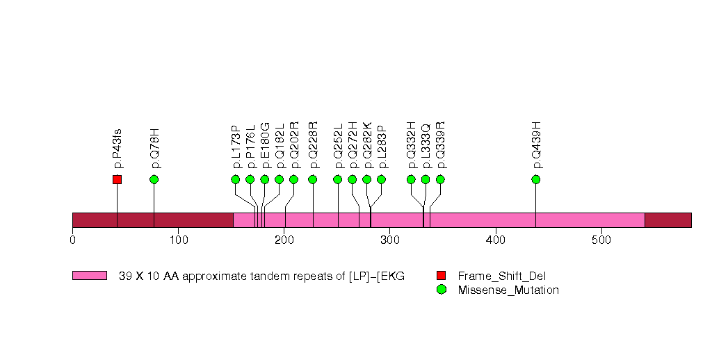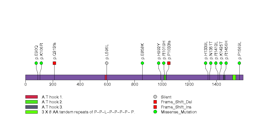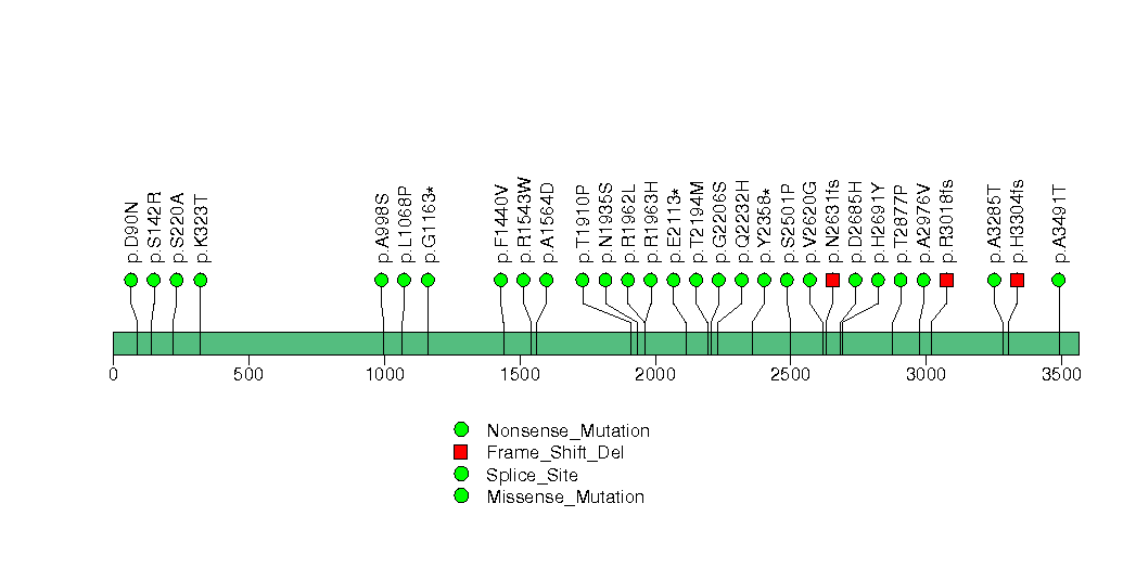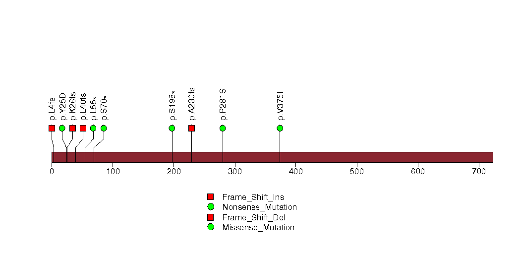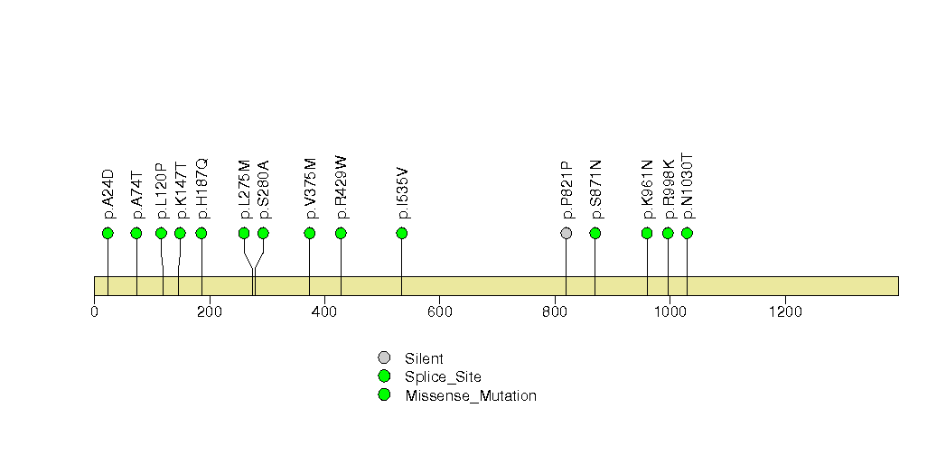 Figure S19. This figure depicts the distribution of mutations and mutation types across the ANKRD30A significant gene.